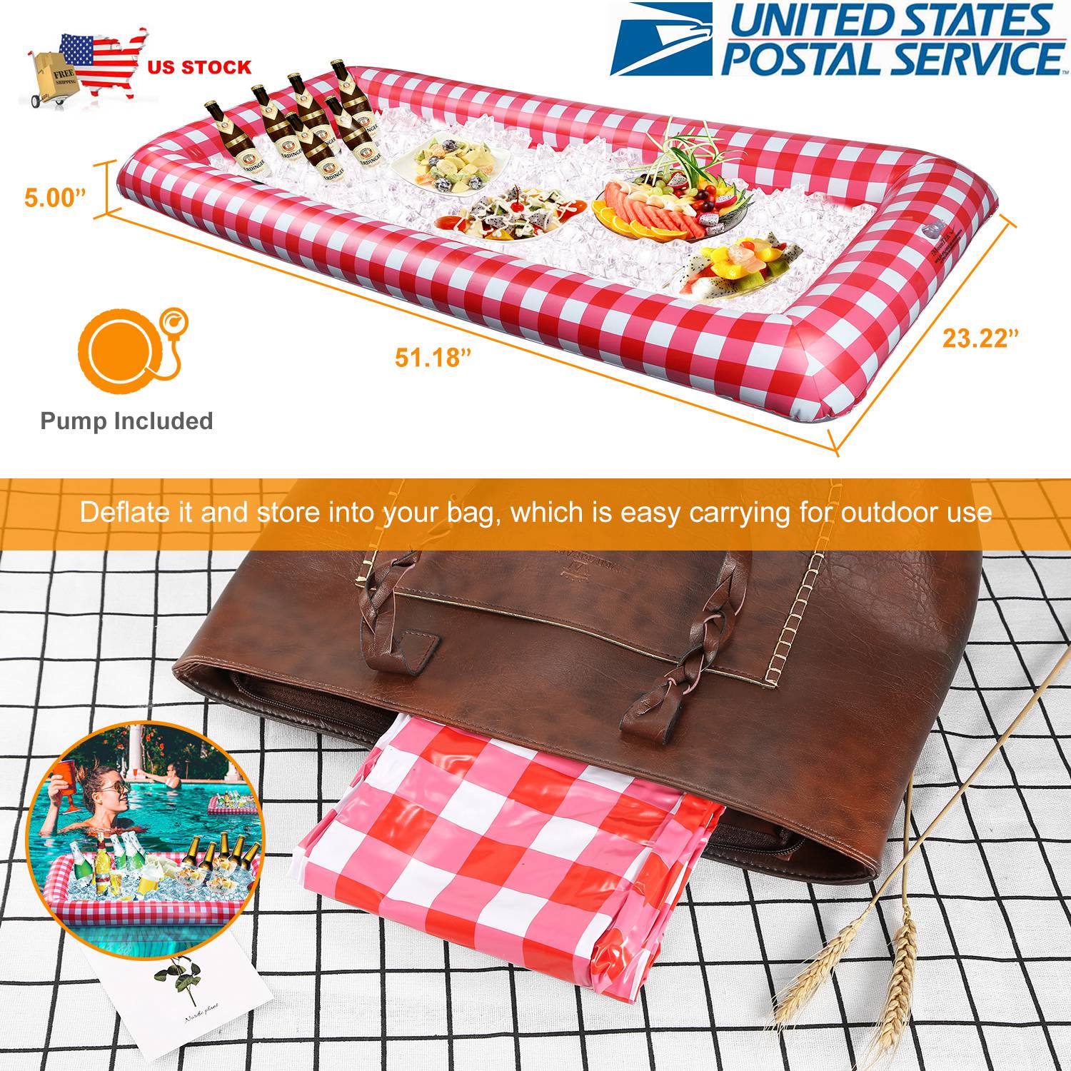 Inflatable Ice Serving Bar Pool Table Serving Bar Salad Ice Buffet Beverages Drinks Cooler Tray w/ Inflate Deflate Plug Pump for Indoor Outdoor Partie
