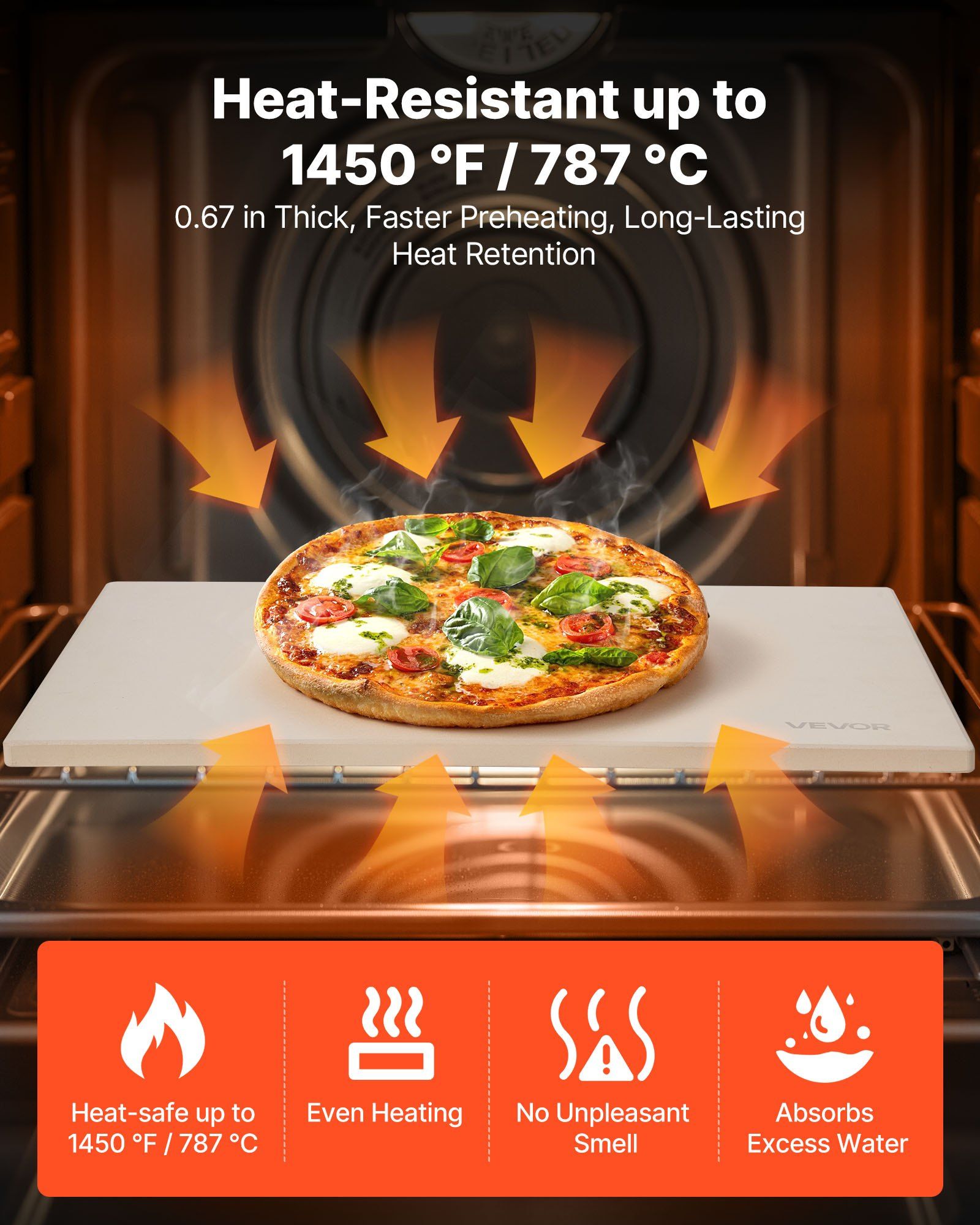 2.Heat-Resistant Cordierite: Our 0.67 in thickened cordierite rectangular pizza stone can withstand up to 1450°F/787°C without warping or cracking. It stores heat longer, shortens preheating. No bad odor during baking, keeping the food's original flavor
